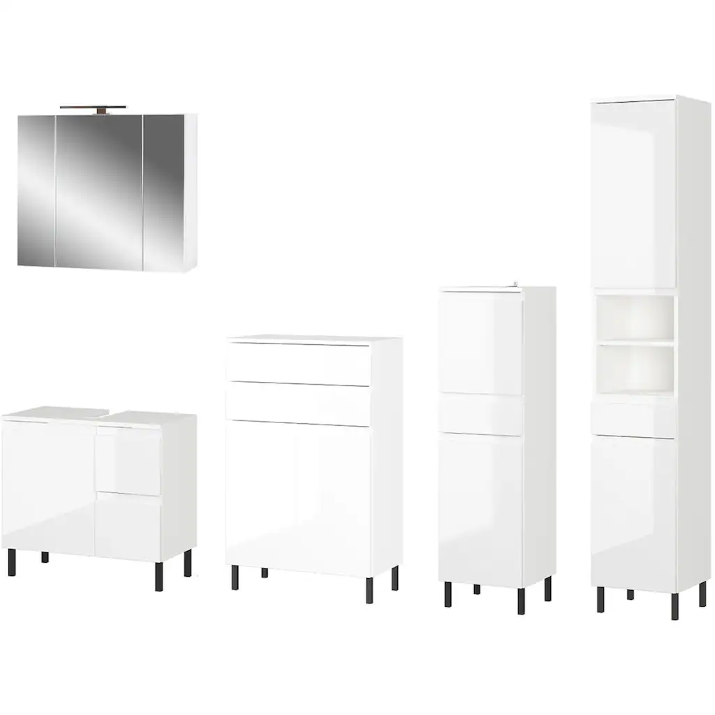 GERMANIA Badmöbel-Set »Scantic«, (5 St.), Bestehend Aus Kommode, Schrank, Hochschrank, Waschbeckenunterschrank